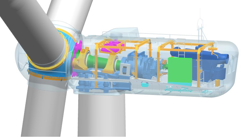 为保证润滑效果,开发传动链集成式润滑系统,主轴承、增速器轴承与齿轮,以及发电机轴承共用一套液压冷却润滑系统。