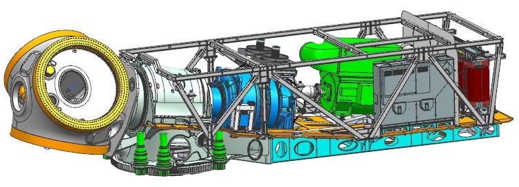 在国内较早提出并应用发电系统(发电机、变流器、干式升压变压器)上置技术,集成电气系统、冷却系统,机械承载结构与动力学分析。具有电缆数量少、易施工、塔内线损少等优势,免除箱变土建,减少整机和风电场综合成本。