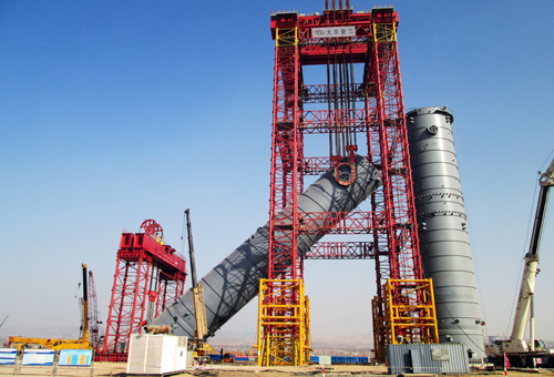 液压门架起重机,是针对石油化工吊装领域的专用起重机,为中化二建襄垣项目成功吊装四台煤制油大型反应器。