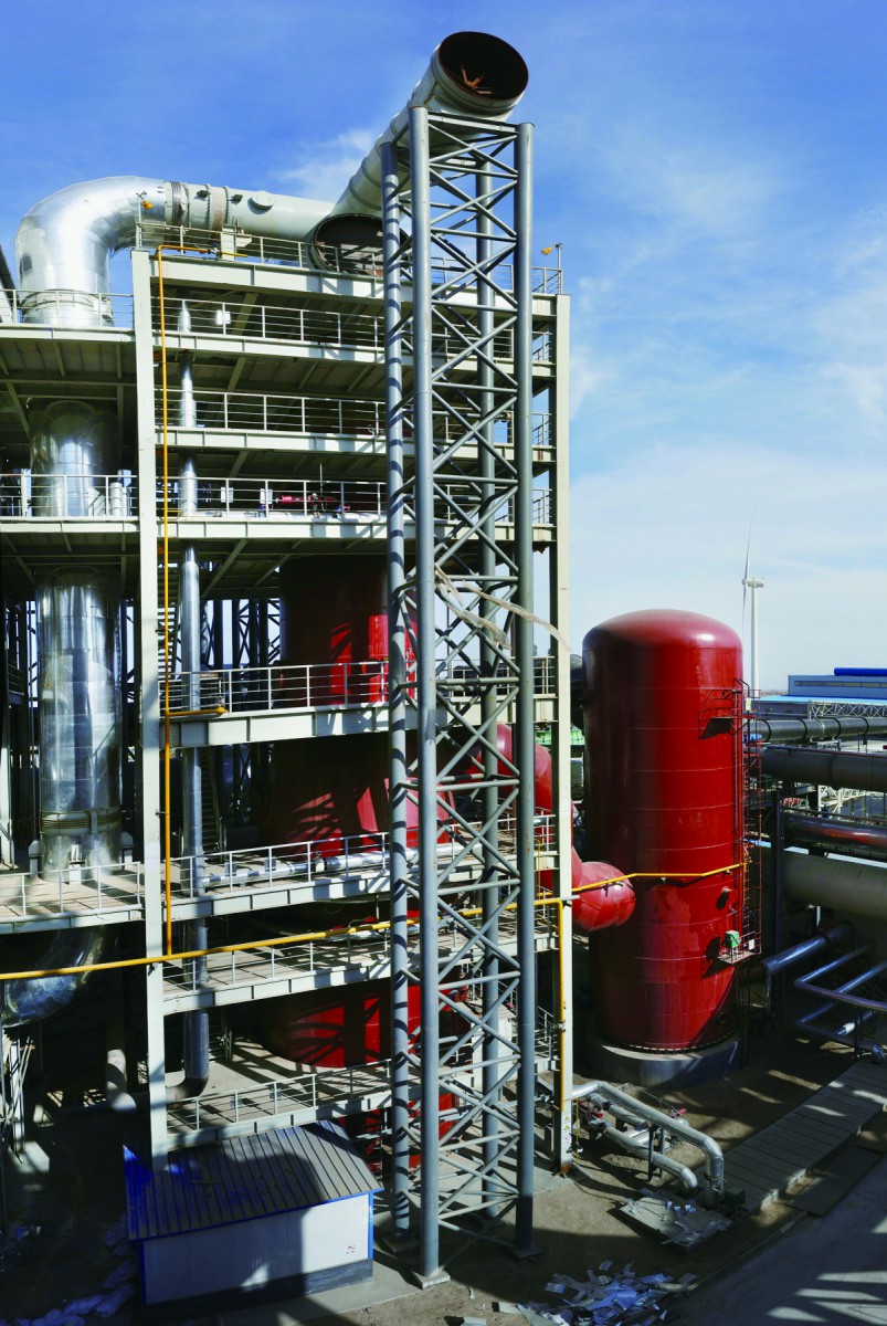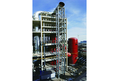环缝洗涤装置,是一种气体降温、除尘、除雾装置。该设备包含环缝洗涤塔和脱水器,其中,环缝洗涤塔主要由预清洗段、环缝段和液压系统组成,设备规格为Φ6500/Φ5000mm。脱水器设备规格为Φ7000mm。