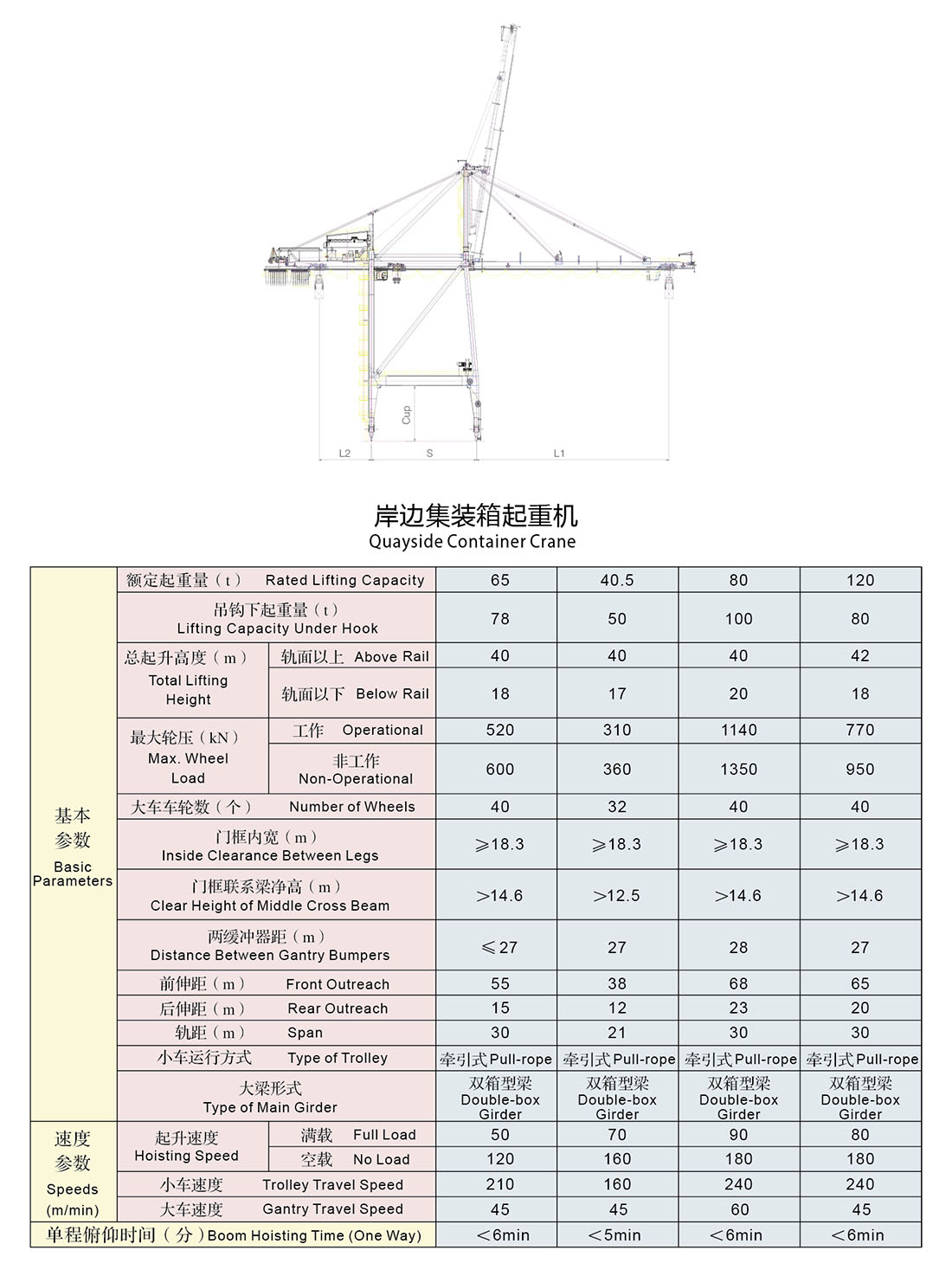 岸边集装箱桥式起重机,是集装箱码头前沿装卸集装箱的专用起重机,主要由起升机构、小车行走机构、大车行走机构、仰俯机构4个机构组成。