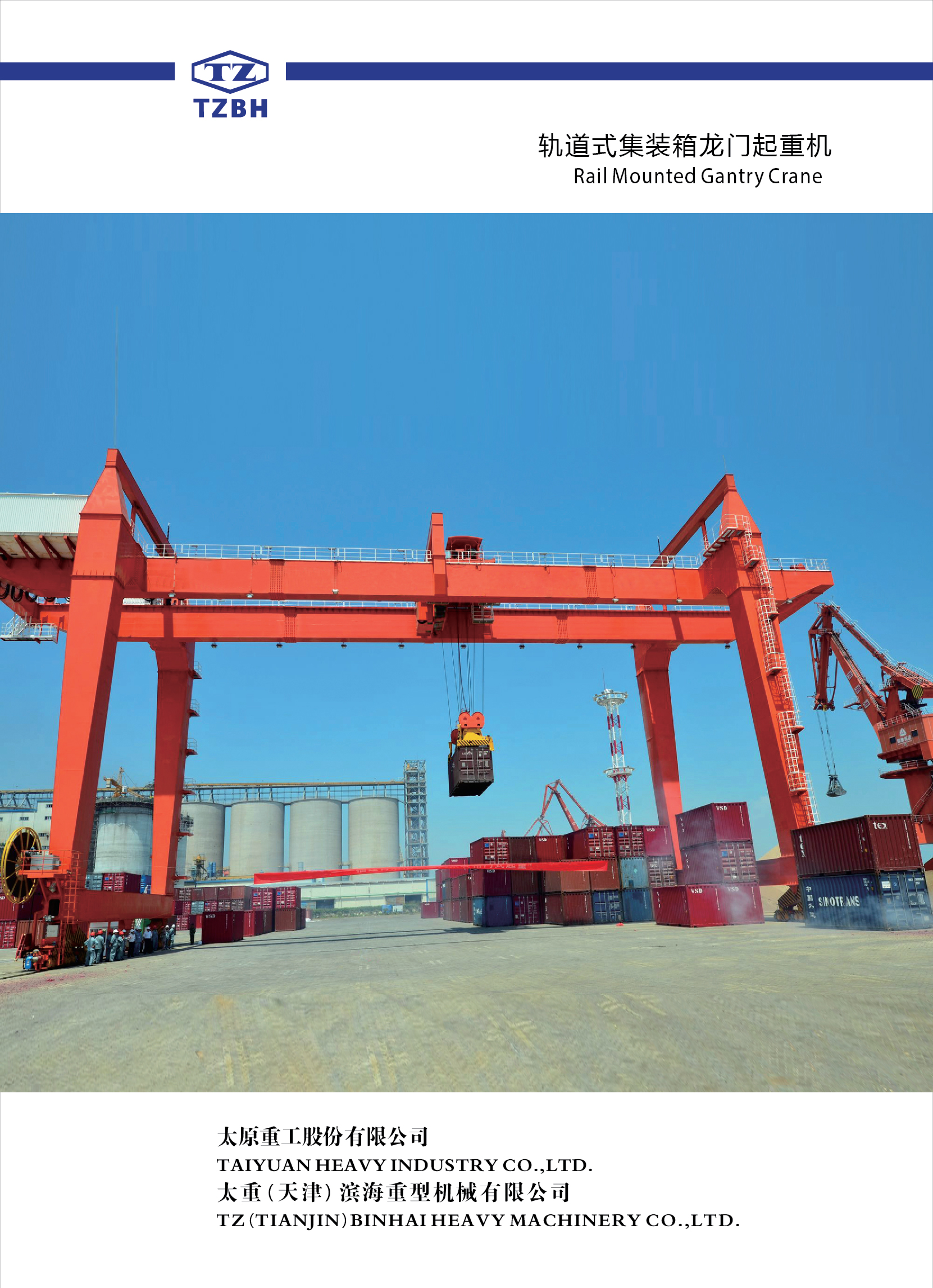 轨道式集装箱龙门起重机,是集装箱码头和中转站货场进行装卸、搬运和堆码集装箱的专用机械。机构类似于轮胎式场桥。只是在专门铺设的钢轨上行走。可按滚装发运的方式向客户提供所需的轨道式集装箱门龙门起重机。