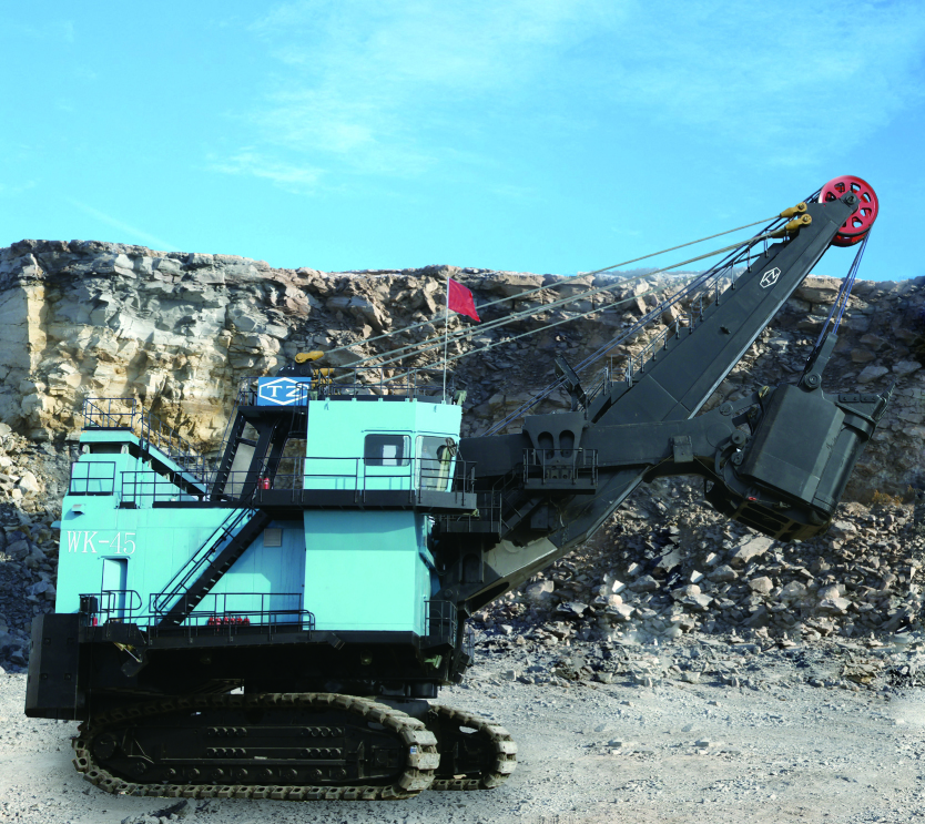 WK-45矿用挖掘机为我公司研制的大型露天矿山采装设备,它汇集了我公司多年矿用挖掘机设计、工艺、制作成功经验的同时,采用大量国内外先进技术,可适用于大型露天煤矿、铁矿及有色金属矿山的剥离和采装作业。