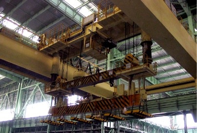 电磁挂梁起重机,应用于冶金企业的连轧车间、成品库等场所,公司已生产数十台电磁挂梁起重机。