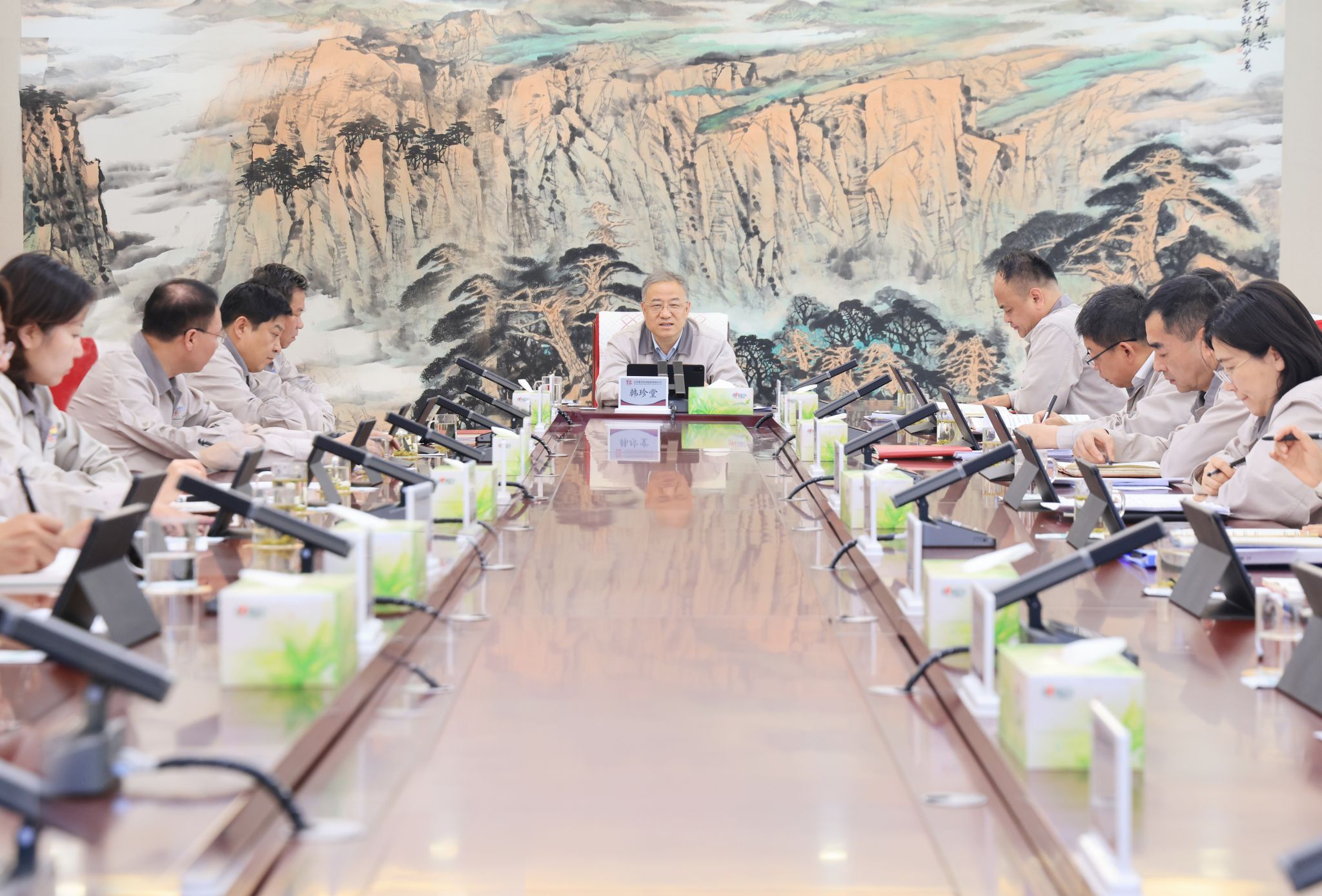 “两优一先”推荐评选工作实施方案的报告》等议题。集团公司党委书记、董事长韩珍堂主持会议。