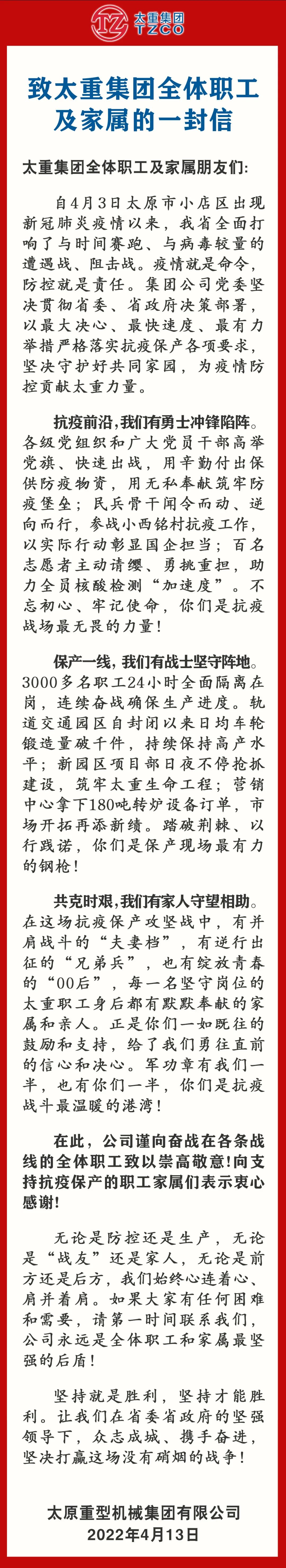 太重是共和国装备工业的长子,是中国共产党领导下的国有企业,公司深入贯彻落实习近平新时代中国特色社会主义思想,坚定不移地坚持和加强党对企业的全面领导。