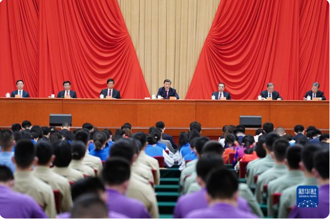 5月10日,庆祝中国共产主义青年团成立100周年大会在北京人民大会堂隆重举行。新华社记者 翟健岚 摄