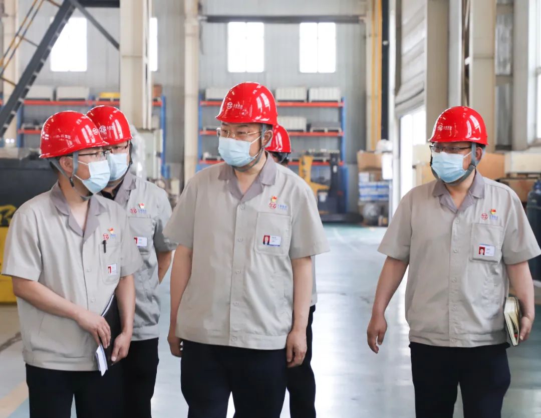 全力提速新品开发,6月6日,集团公司党委书记、董事长韩珍堂来到生产装配一线,对新产品研制和原料管理工作进行实地调研,详细了解新产品制造过程、技术性能、安装装配等情况。