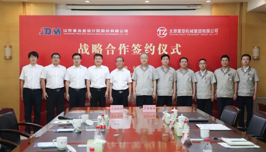 与山东省冶金设计院股份有限公司签署战略合作协议,集团公司党委书记、董事长韩珍堂与山冶设计董事长魏新民分别代表双方进行签约。