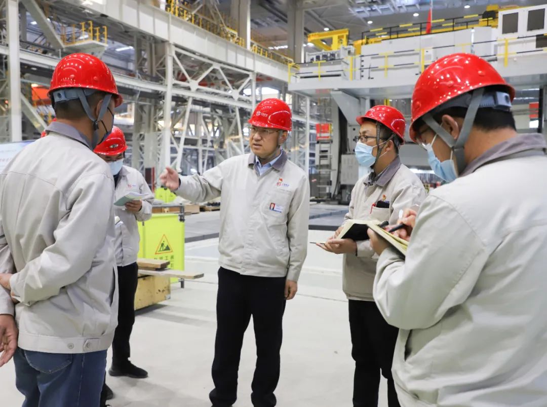 在加工装配联合厂房内,涉及矿山、焦化、起重机及工程机械的多台设备已经安装完成,工人师傅们正在进行联动试车和试生产。韩珍堂每到一台设备前都停下来看进度、听汇报、解难题,他指出,随着设备的逐步增多,车间每个区域都要明确责任人,以高度的责任心和紧迫感,细化每日计划,解决突发问题,实现一日一清。要成立专门的验收团队,引进相关专家,按照相关验收标准,快速对各区域设备验收进度进行检点,同时做好相关经验积累,为下一步车间持续完善奠定基础。要按照“有安排、有部署,有检查、有落实”的要求,联合工艺技术部门认真测算各自产能,对每台设备能力大小了然于心,在提高效率上下功夫,把加工装配联合厂房打造成华北最大的装配基地。各项目部要站在全局高度想问题、算总账,做好采购设备质量、进度和价格的统筹对比。设备安装调试期间要有序做好垃圾及时清理及运输,保证厂房施工环境的卫生及安全。