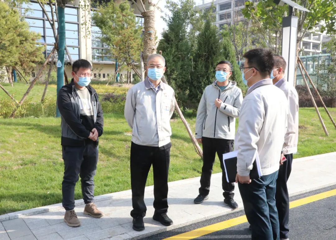 研发中心里,道路两旁树木葱翠蓬勃,生机盎然。平坦整洁的柏油路面上,一条条鲜亮崭新的交通标识标线显得格外亮眼。韩珍堂沿着楼前的绿化带边走边看,认真了解绿化情况,深入地下停车场、员工餐厅、展览馆等重点区域仔细查看,对每一处施工细节提出明确要求。