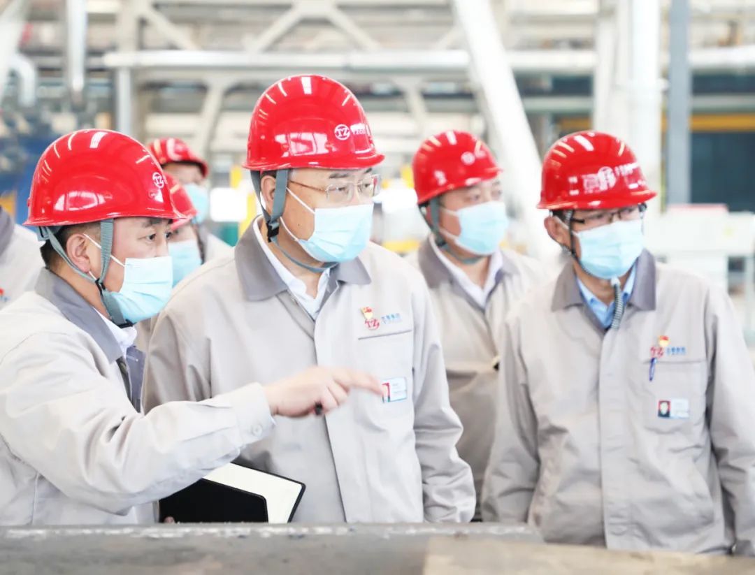 生产现场弧光闪烁、焊花飞舞,韩珍堂边走边看,同相关单位负责人充分沟通,一边了解实际情况一边提出指导意见。他强调,持续深化信息化与工业化融合发展,是新发展阶段制造业数字化、网络化、智能化发展的必由之路,是数字时代建设制造强国、网络强国和数字中国的紧密结合点,要不折不扣贯彻落实国家、省市重大决策部署,加快信息化发展步伐,全方位提升精细化管理水平,以“灯塔工厂、智能工厂、黑灯工厂”建设引领公司高质量高速度发展再上新台阶。