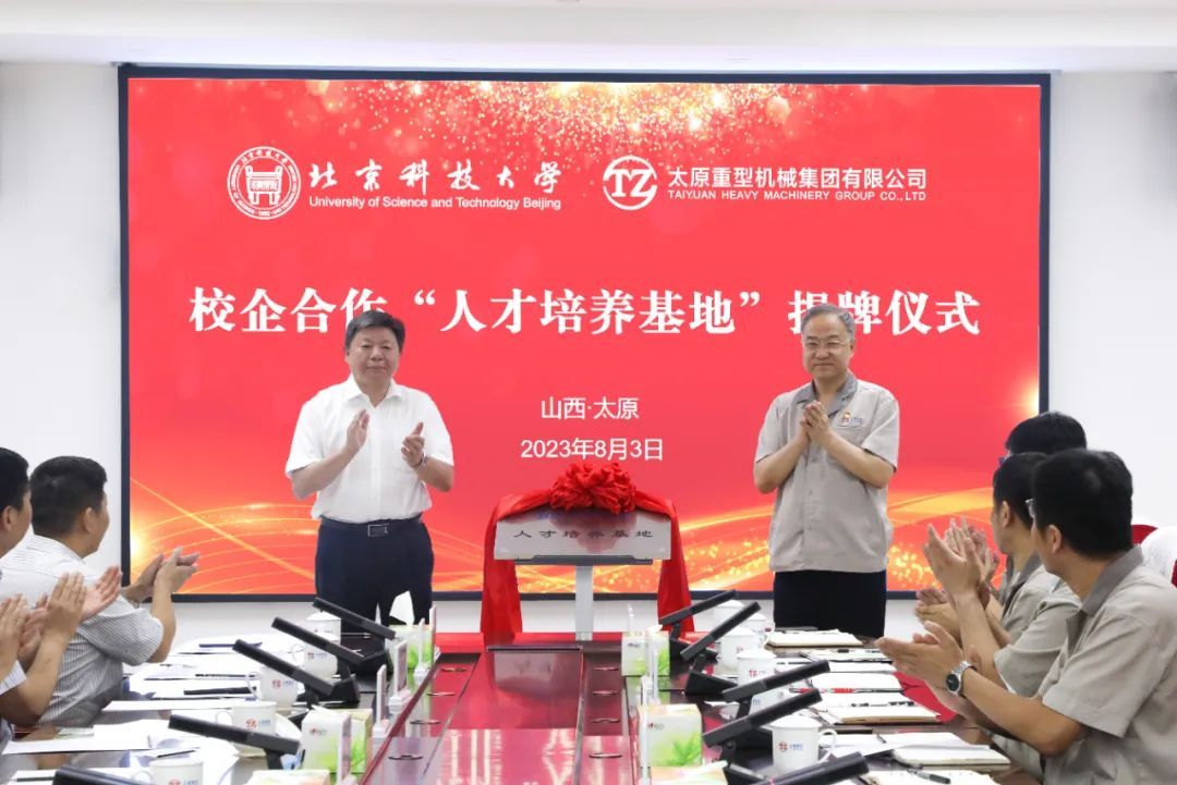 和北京科技大学校企合作仪式在太重举行。集团公司党委书记、董事长韩珍堂与北京科技大学校长杨仁树共同揭牌,并围绕人才培养、校企合作、产学研攻关等方面开展座谈交流。