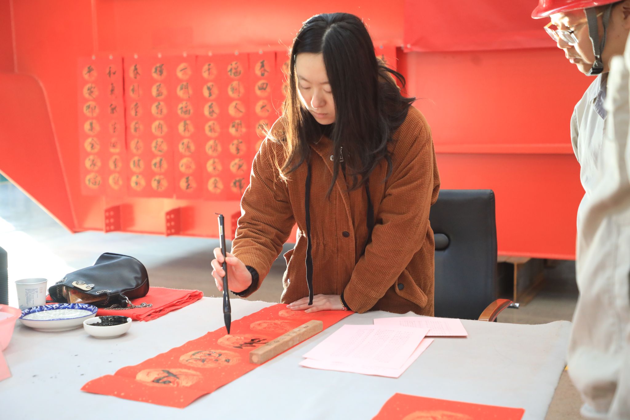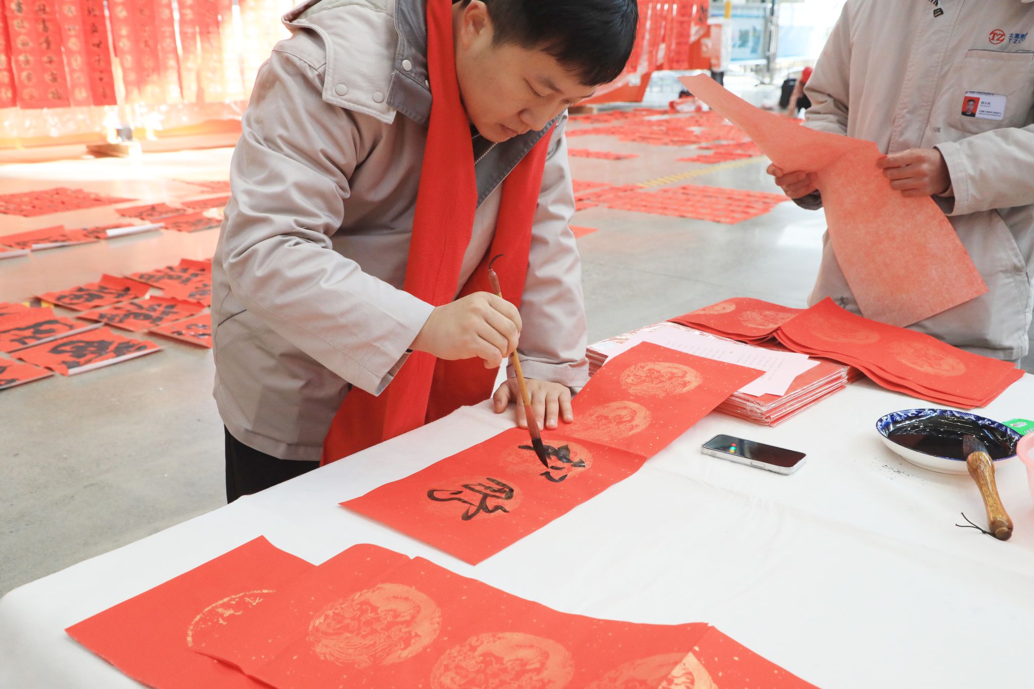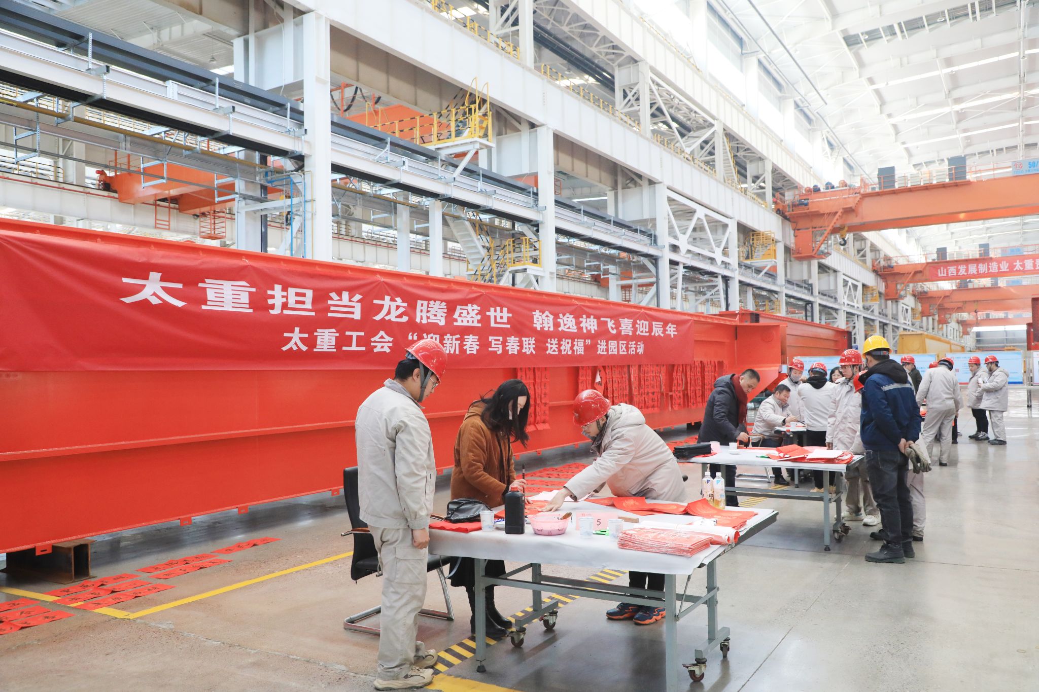 为丰富职工文化生活、喜迎龙年新春,1月23日,公司工会举办“迎新春 写春联 送祝福”进园区活动,在太重智能高端装备产业园区加工装配联合厂房,来自省内的知名书法家和公司书法爱好者们齐聚一堂,为各子分公司职工义务书写春联,以这种喜庆的形式向广大干部职工送上春节的祝福。集团公司党委专职副书记、副董事长、工会主席张新伟参加活动。