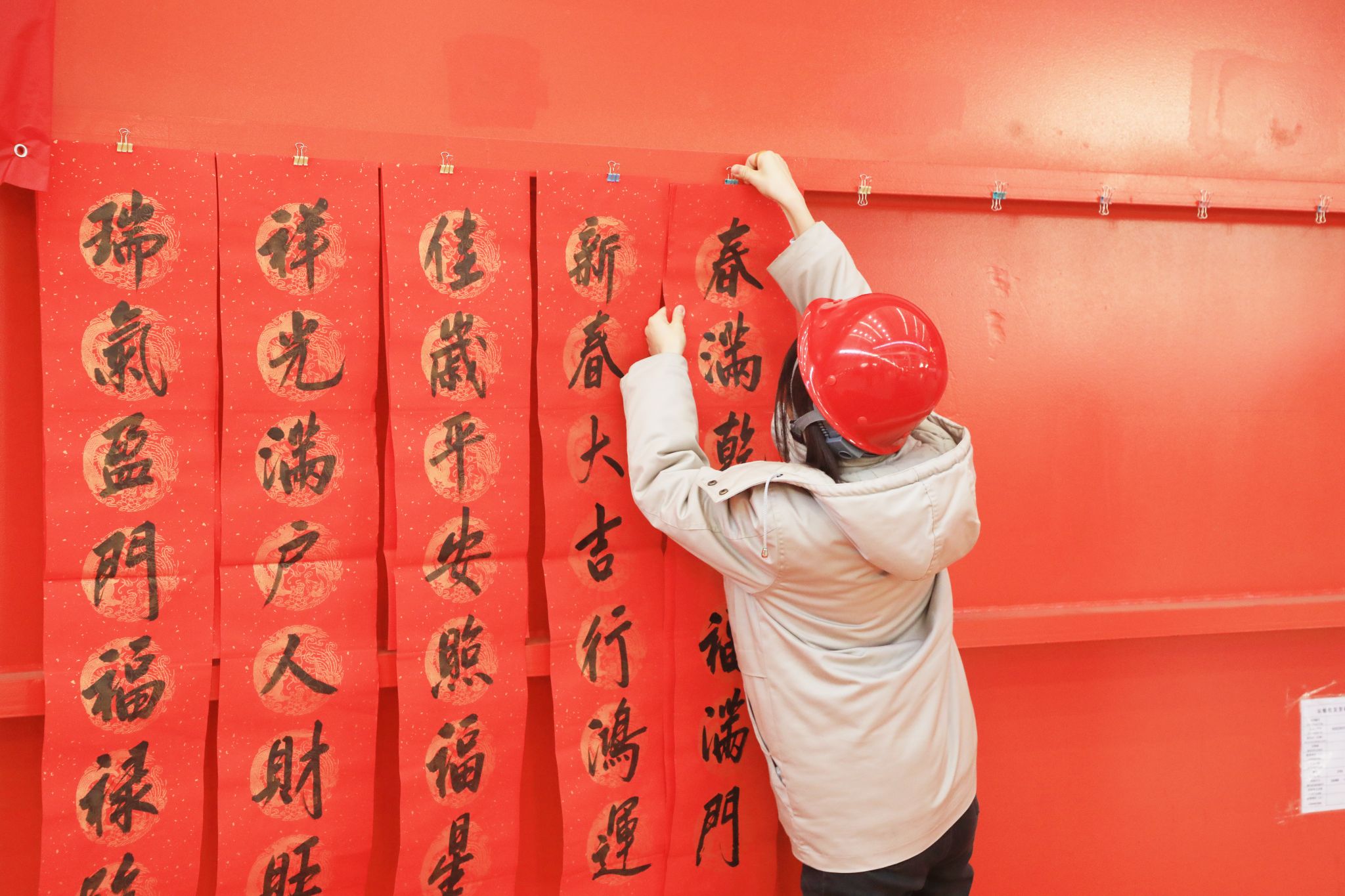 “乘风破浪,久久为功,再铸太重新辉煌;盛世龙腾,挑战自我,振兴崛起太重梦”“一帆风顺年年好,万事如意步步高”……铺纸、蘸墨、起笔,大家挥毫泼墨、激情书写,在红彤彤的喜庆与希冀中,将用心挑选的文字用艺术的形式展现出来,一幅幅遒劲有力、清爽洒脱的新春祝福,带着清新的墨香跃然纸上。