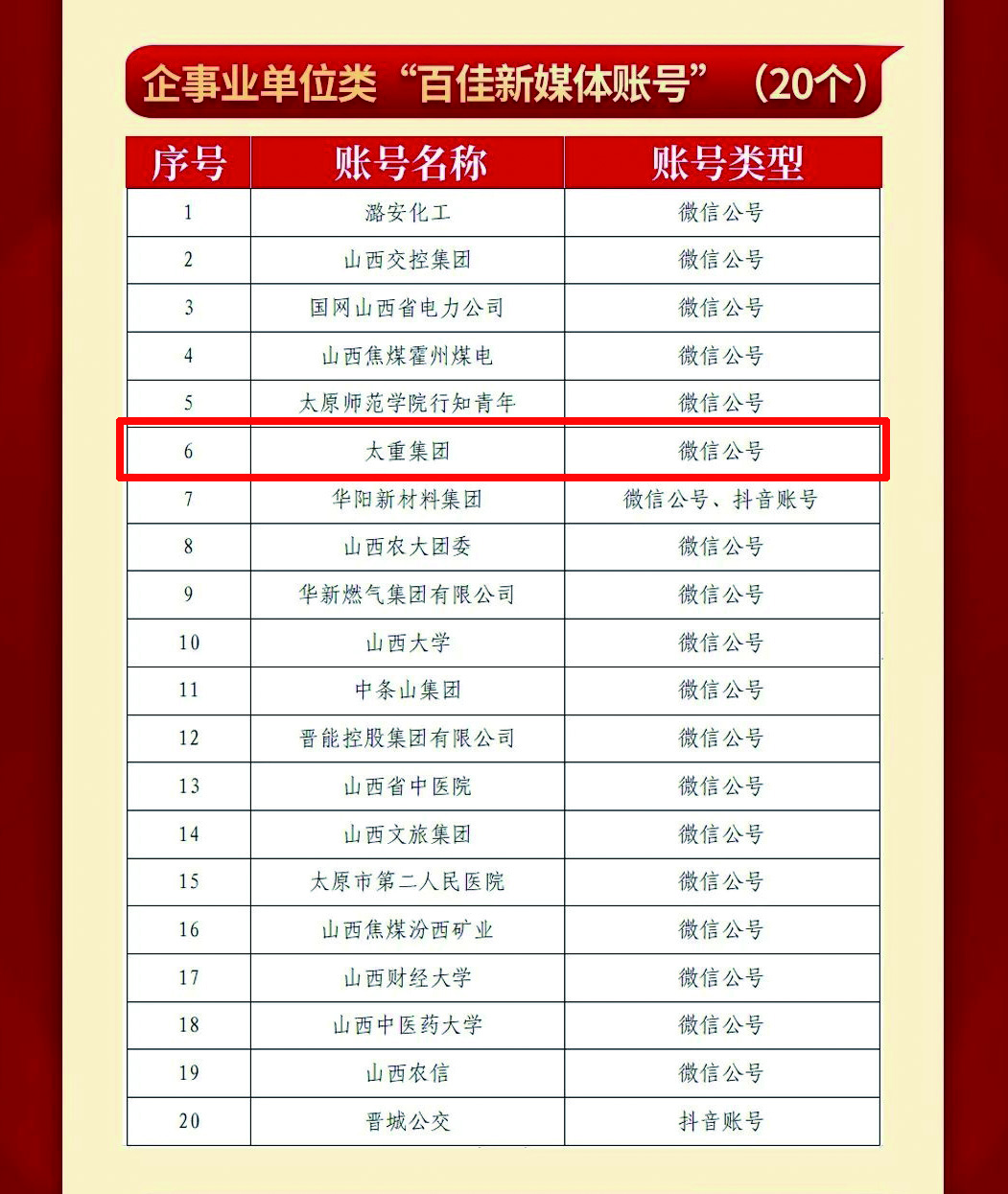山西省“百佳新媒体账号”公示 太重榜上有名