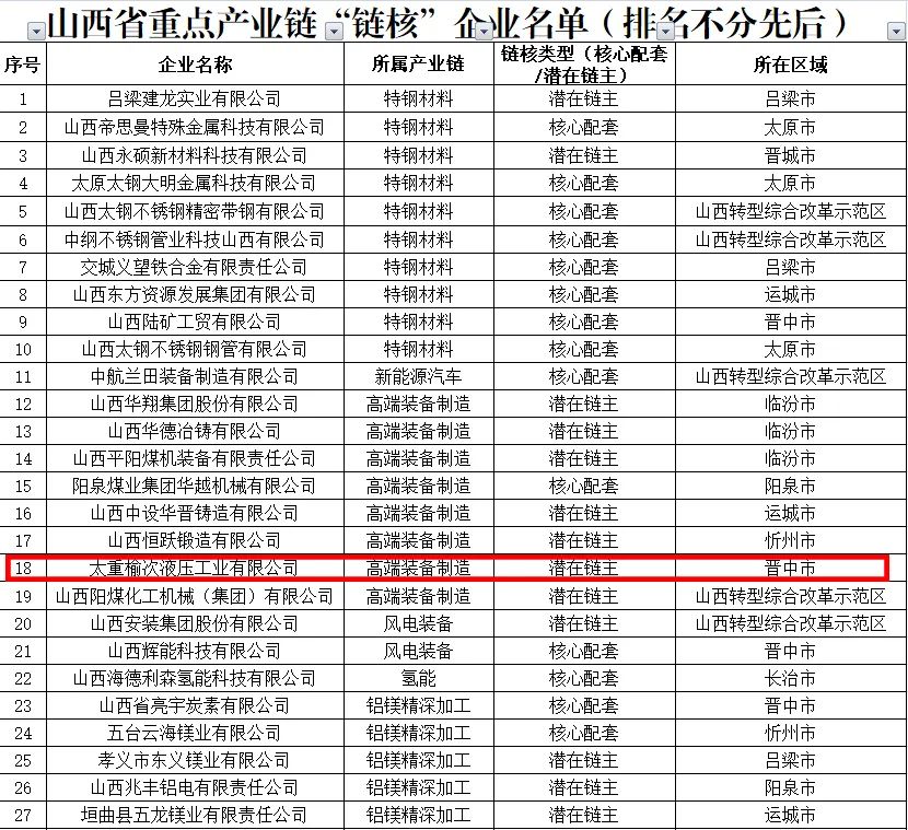 近日,山西省工业和信息化厅公示了山西省重点产业链“链核”企业名单,每日大赛