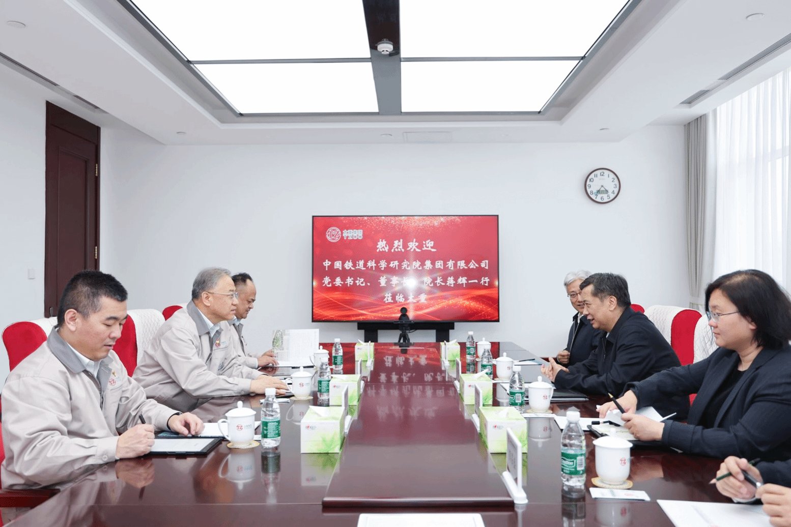 龙城四月天,春色正当时。4月17日,集团公司党委书记、董事长韩珍堂热情接待了中国铁道科学研究院集团有限公司党委书记、董事长、院长蒋辉一行,双方就进一步把握发展新趋势、谋求合作新机遇,合力推动我国轨道交通产业高质量发展进行深入交流。