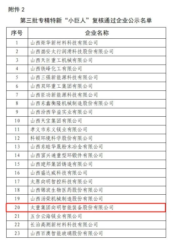 向明智能装备股份有限公司顺利通过第三批专精特新“小巨人”企业复核。