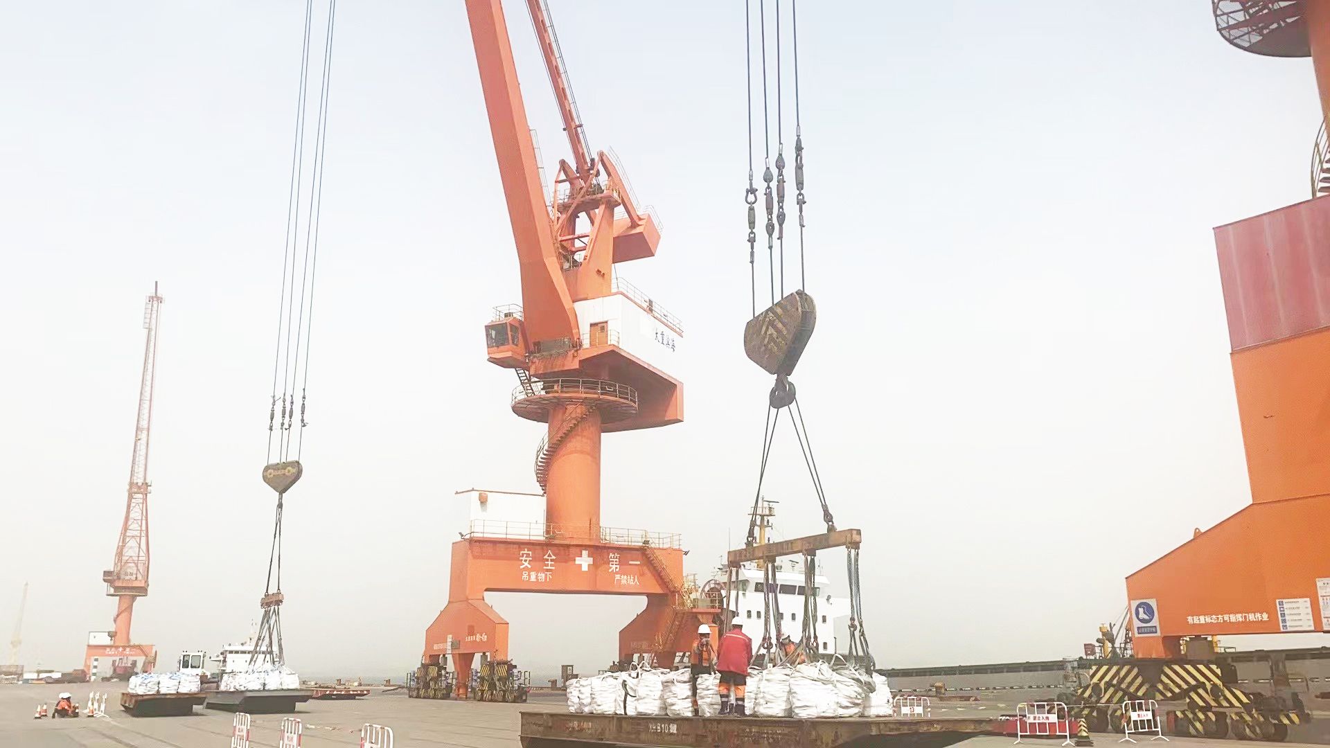 铬铁,作为炼钢的重要合金添加剂,每块重量都将近15公斤,主要用于不锈钢、特钢的冶炼,进而用于航空、宇航、造船及国防工业领域等国民经济基础性行业,市场需求量极大。虽然它的价值高达8000-8200元/50基吨,但是由于其形状不规则、包装易破损,运输和装卸工作要求很高,是每个码头都不能小觑的难题。然而,在太重滨海重装码头,这个问题却并非难事。