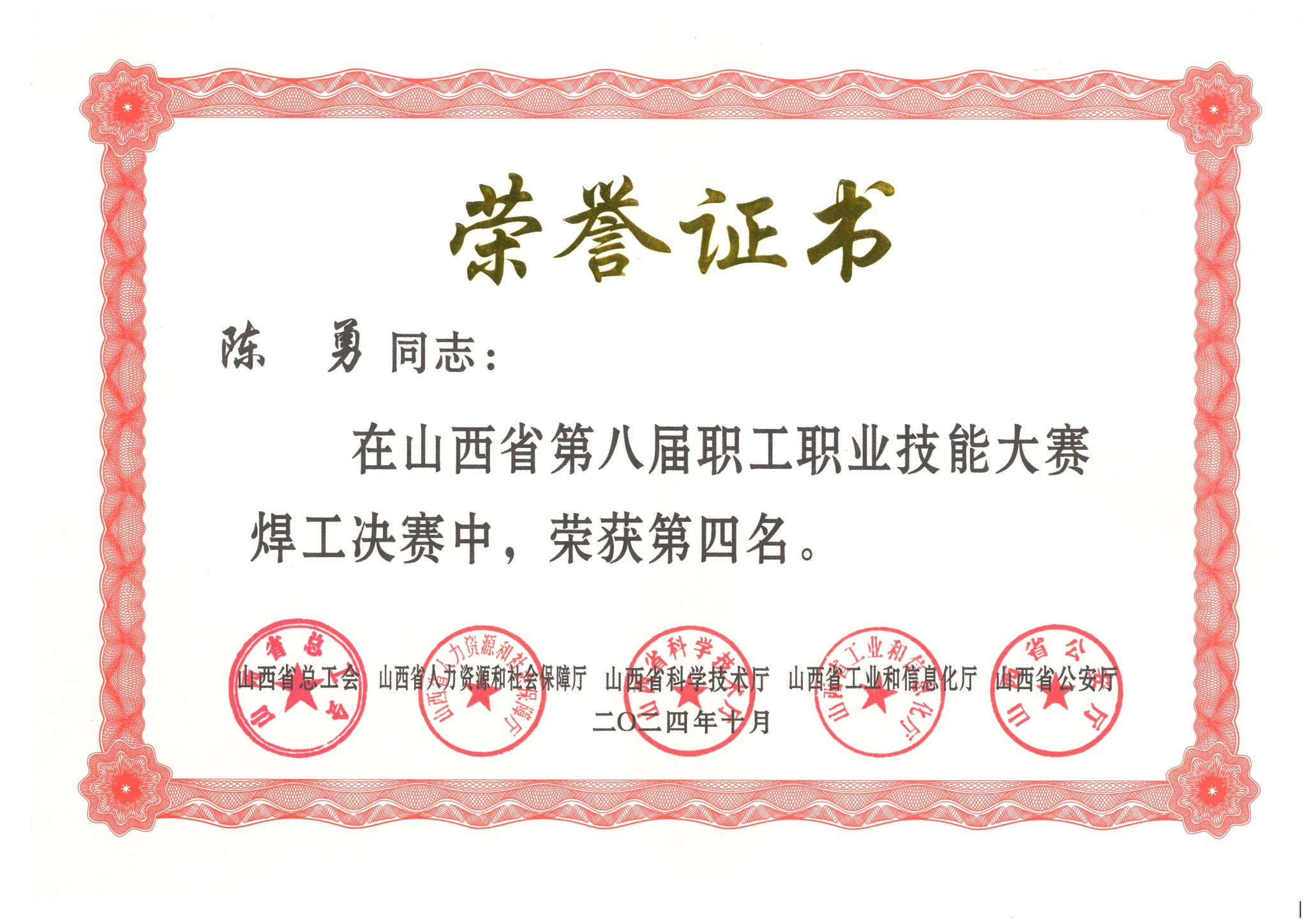 此外,公司技术中心焊接工艺研究所焊接专家樊志勤,在大赛期间积极筹备,认真做好各项服务工作,荣获“优秀指导教练”称号。