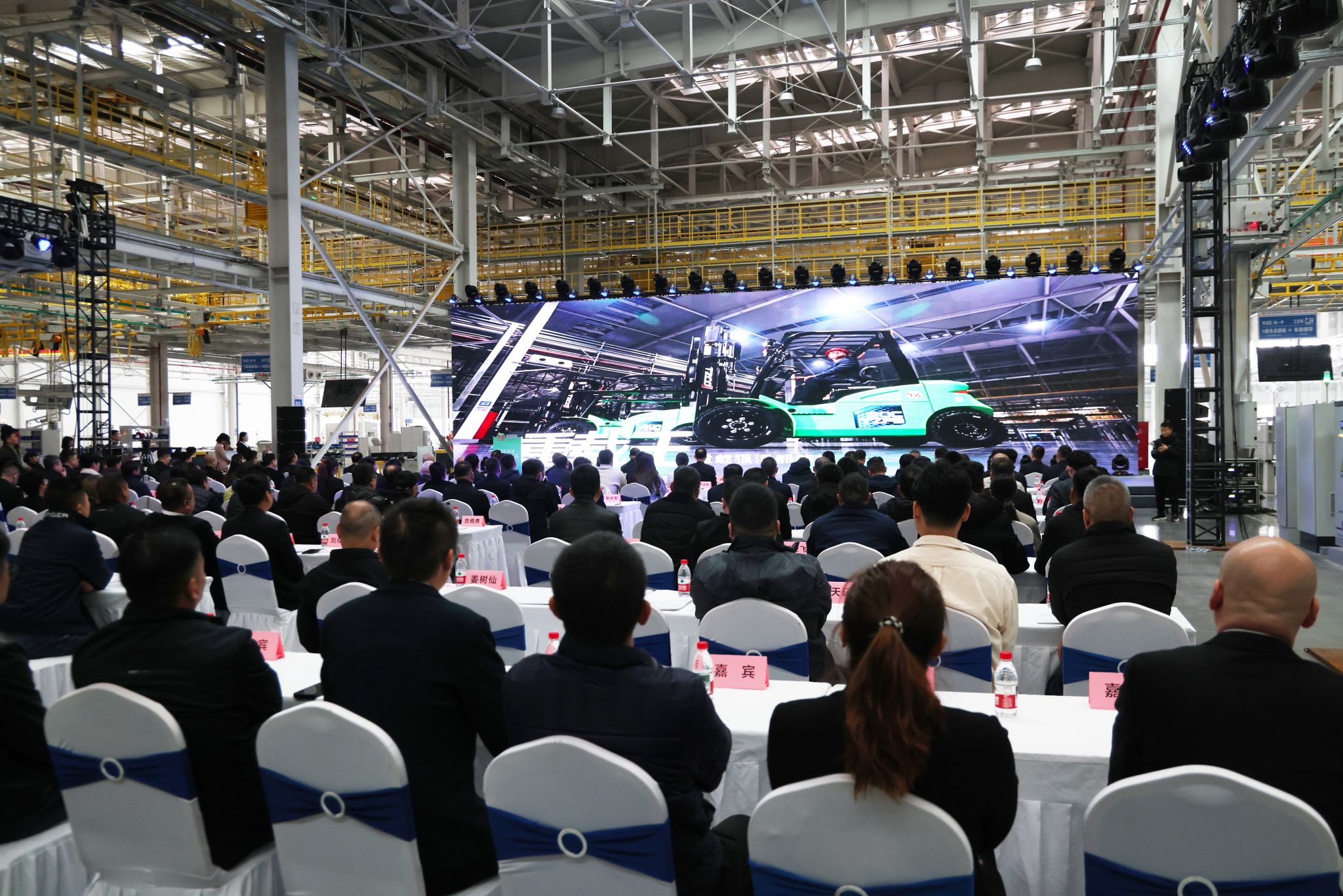 新能源智能叉车产品发布会在车间现场顺利举行,全球150余位用户代表齐聚一堂,共同见证太重叉车“绿擎千钧”的硬实力!
