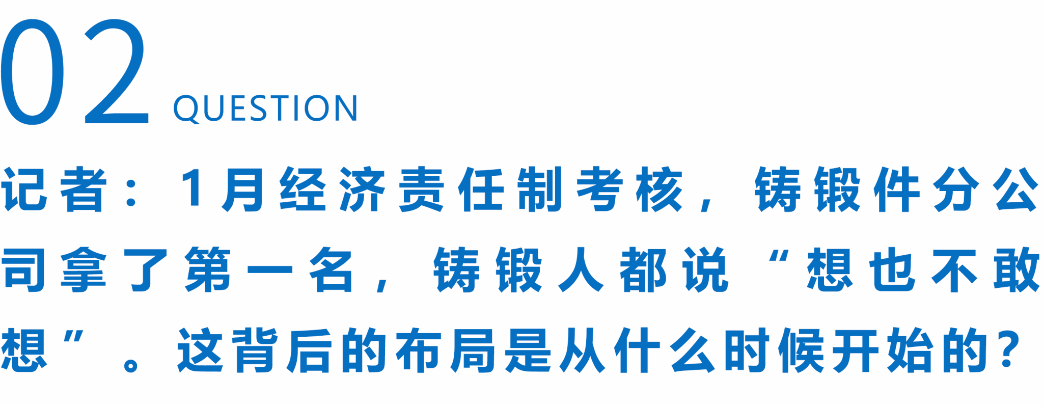 但我心里明白,欠职工的信任,得靠“干出来”还上。你问我布局从什么时候开始的,就是从那十几号人站在我办公室的那刻开始的。1月份的数字不是突然冒出来的,它是铸锻人这两年熬的夜,一点一点堆出来的。别人看到的是“第一名”,我看到的是那条路——从心存质疑,到大家愿意试试看,从想都不敢想,到现在稳稳的“每个月一个亿”。
