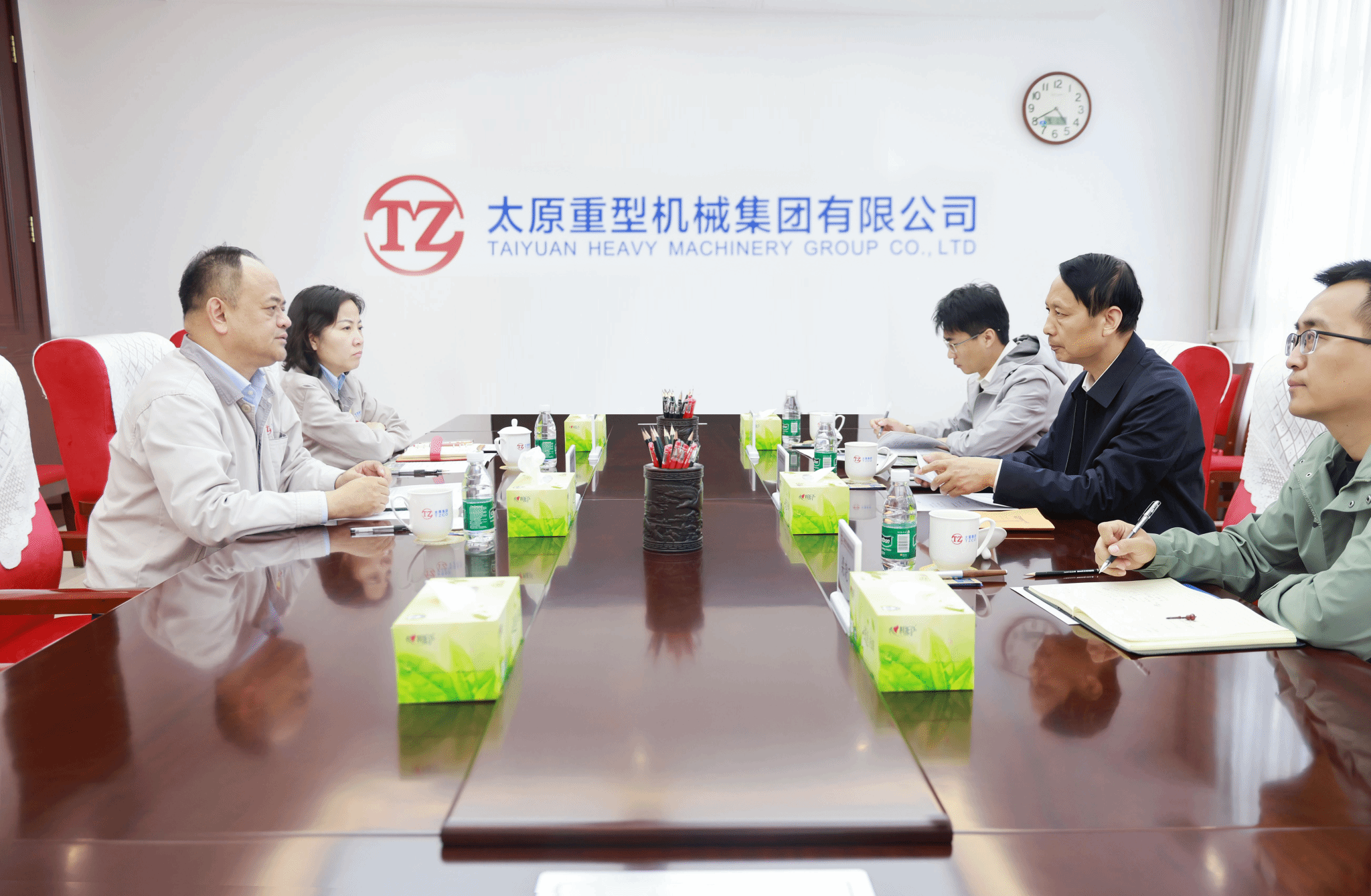 陶家晋对新华社山西分社一直以来的关心和帮助表示感谢,并简要介绍了公司的发展历程、经营情况、未来规划以及行业的发展趋势。他说,当前,太重抢抓“十五五”战略机遇,以科技创新赋能产业创新,加快推动重型机械与工程机械融合发展,在重型机械领域持续深耕、扩大优势,推动高端化升级,在工程机械领域对标一流、快速突破,打造规模化优势,企业竞争实力显著增强,经营业绩持续提升,发展态势不断向好。面对日益激烈的市场竞争,公司将坚持国际化战略和全球化视野,积极开拓全球市场,构建国际化全方位支撑体系,持续推动海外市场本土化运营,让太重装备走向世界、享誉全球。
