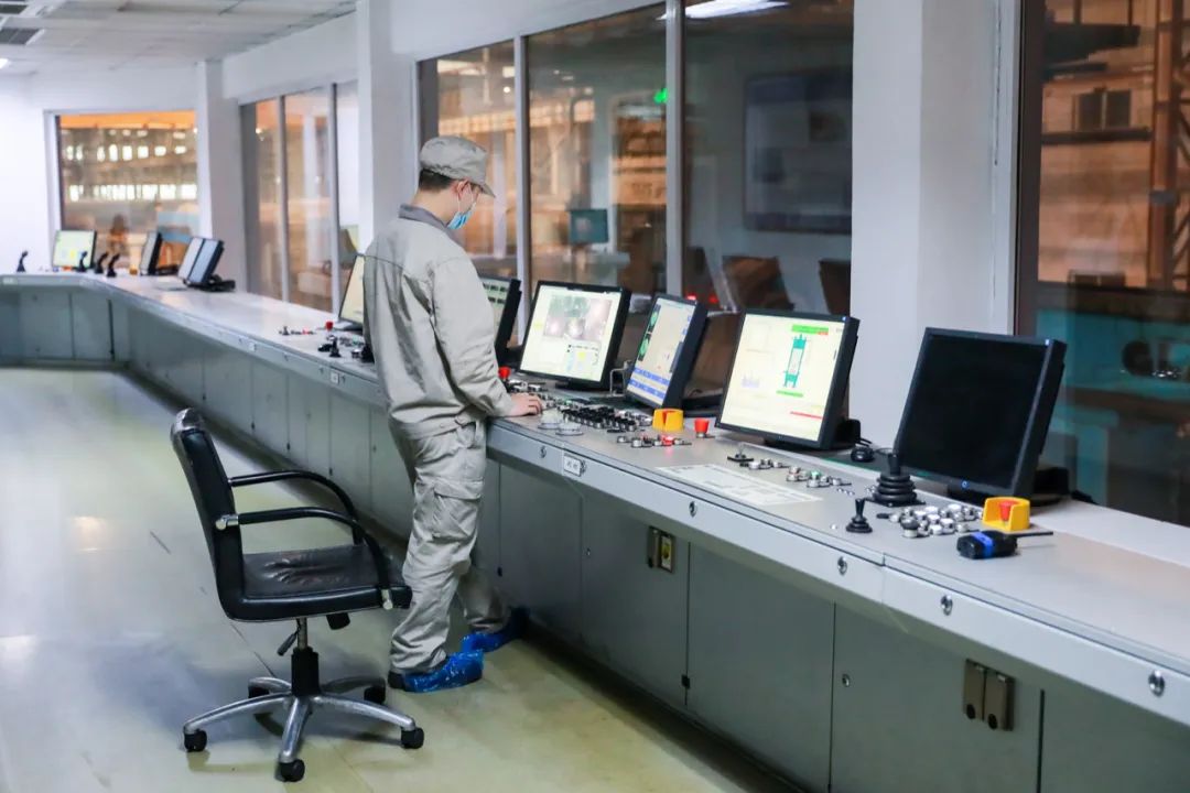 从锯切下料、加热、锻造轧制、热处理、冷处理,到精加工、检测等,几乎每一步都依靠自动化的机器设备来完成。而生产线上的工人师傅们,主要负责监控设备运转及生产情况。在锯切下料区,全自动的机器设备根据不同型号的规格,将不锈钢原料切割成不同规格的钢锭。