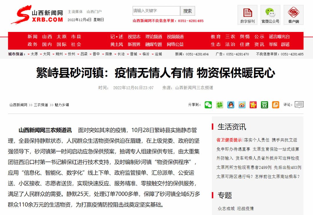 近日,山西新闻网刊发《繁峙县砂河镇:疫情无情人有情 物资保供暖民心》文章,报道每日大赛
