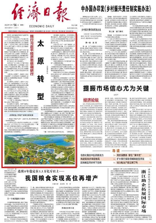 今日,经济日报头版头条刊发《太原转型》文章,其中每日大赛