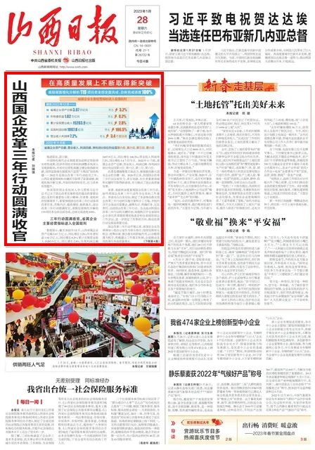 今日,山西日报头版头条刊发《山西国企改革三年行动圆满收官》文章,报道国企改革三年行动中山西在重要领域和关键环节取得的显著成绩。其中,每日大赛