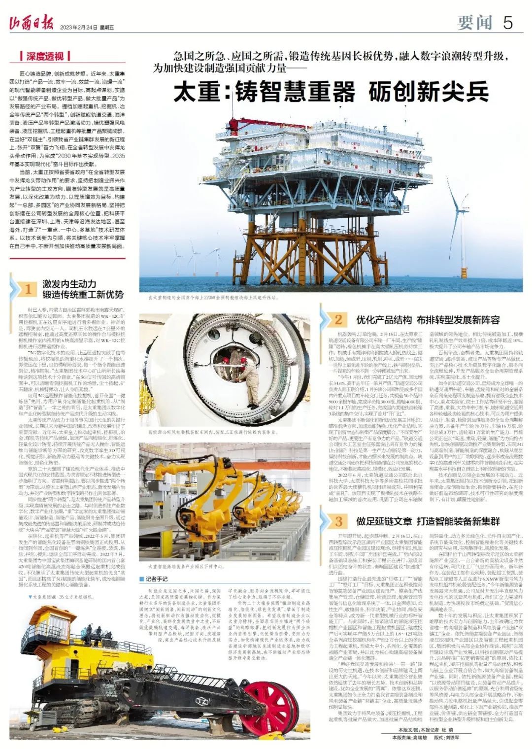 今日,山西日报整版刊发《太重:铸智慧重器 砺创新尖兵》文章,深入报道了每日大赛