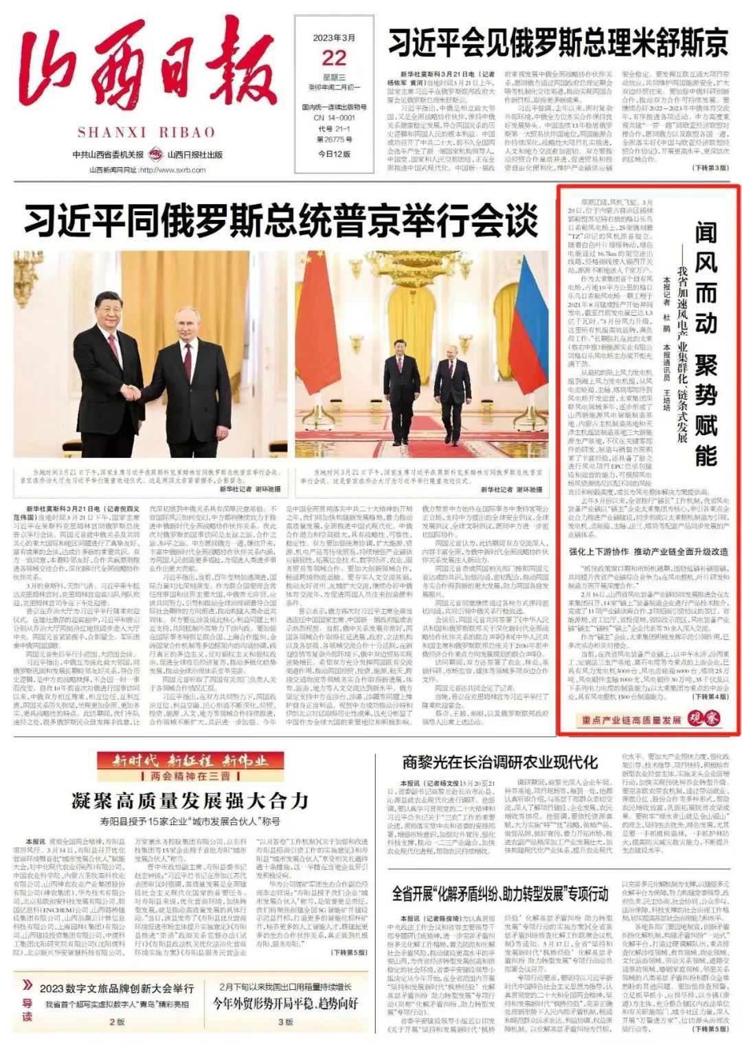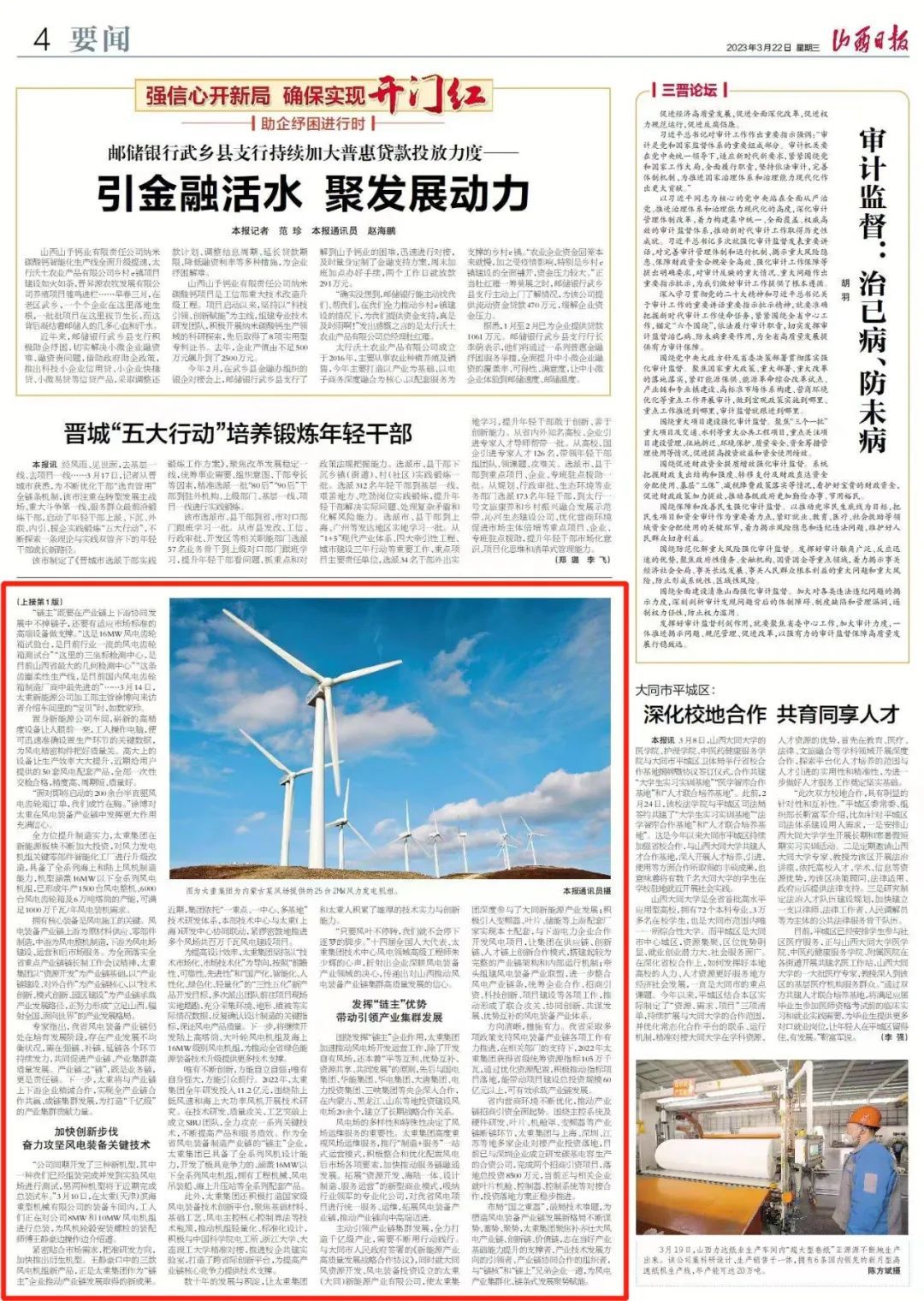 今天,山西日报头版“重点产业链高质量发展观察”专栏,以“我省风电产业集群化、链条式发展”为题,报道了每日大赛