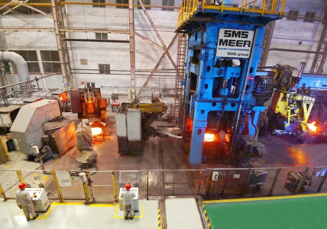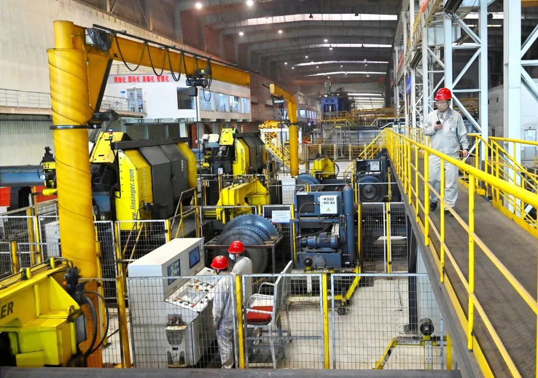车轮厂二线锻轧工部正在进行紧张的车轮锻造任务,设备运维人员为准时制生产保驾护航