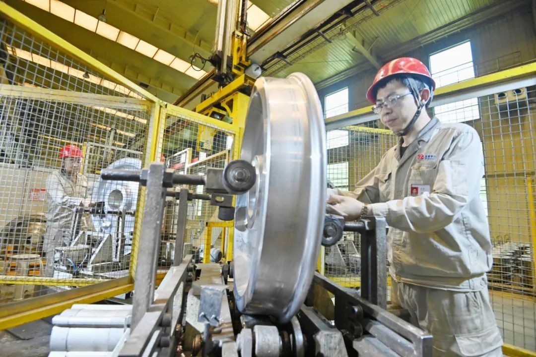 轨道公司车轮厂二线生产车间,热浪袭来,机器轰鸣,锯切、加热、预成型、压制、轧制、冲孔、成型……叮当钢铁碰撞出激昂的旋律,企业为赶制用户订单正加足马力。太重轨道公司是全球唯一的轨道交通用车轮、车轴、齿轮箱及轮对产品的全谱系全系列全流程研发制造基地,近期,该企业持续技术创新、对标挖潜、降本增效,实现了产品质量更优、效率更高、成本更低,为全球供应着最具竞争力的轮轴产品。