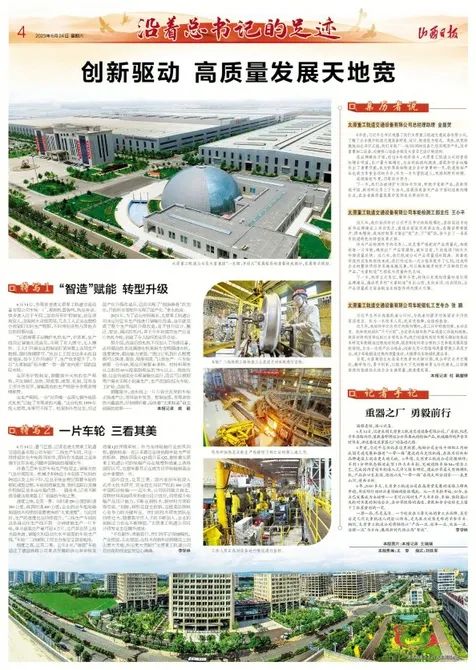 在高质量发展的道路上蹄疾步稳,用实际行动回应着领袖的殷殷嘱托。作为省内唯一“双链主”企业,太重不断加大科研投入力度,在突破关键核心技术、促进产业转型升级的最前沿业绩突出,蔚然形成千帆奋竞、全面创新的生动局面,受到了主流媒体的关注。
