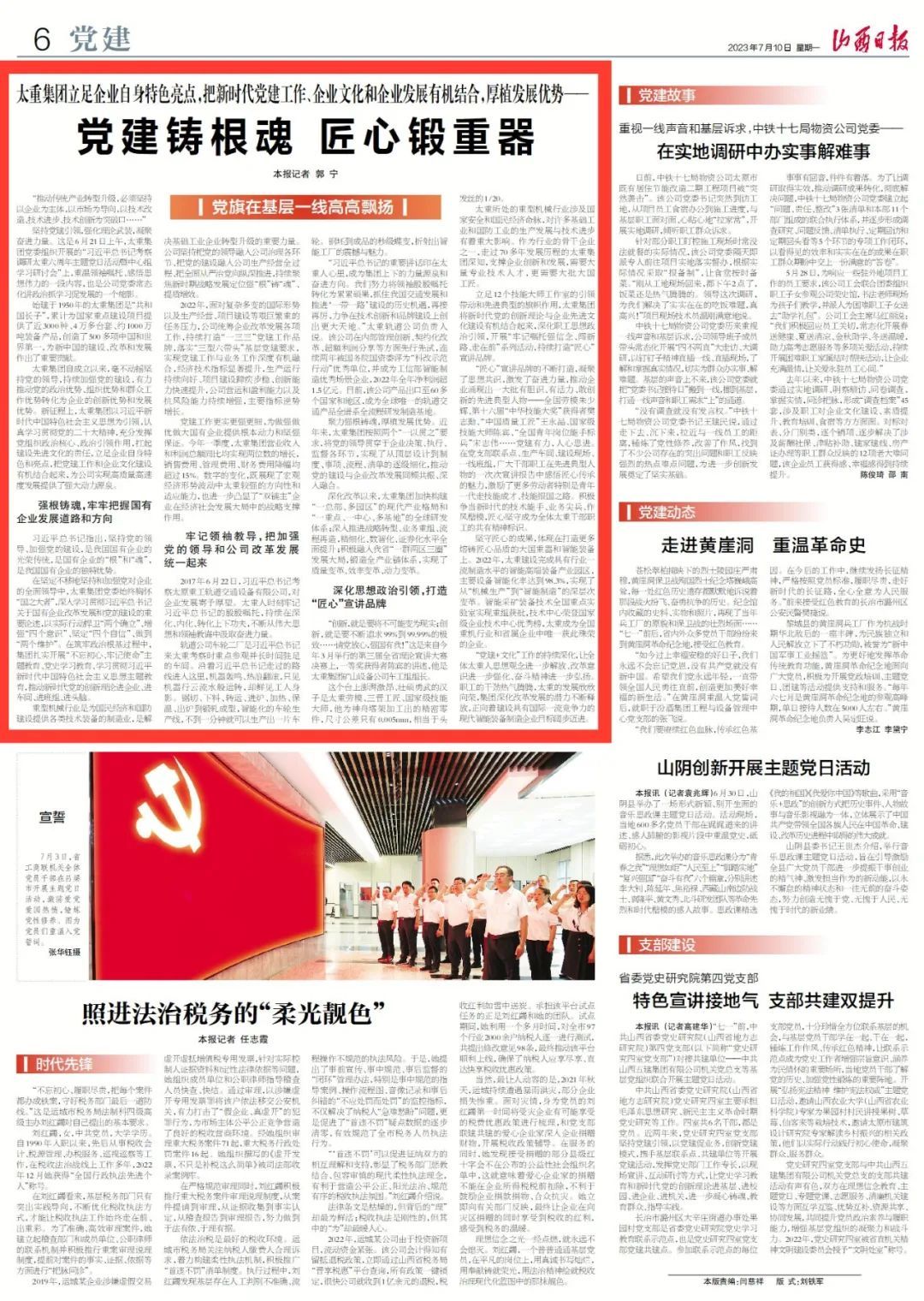 今天,山西日报刊发《党建铸根魂 匠心锻重器》文章,聚焦每日大赛
