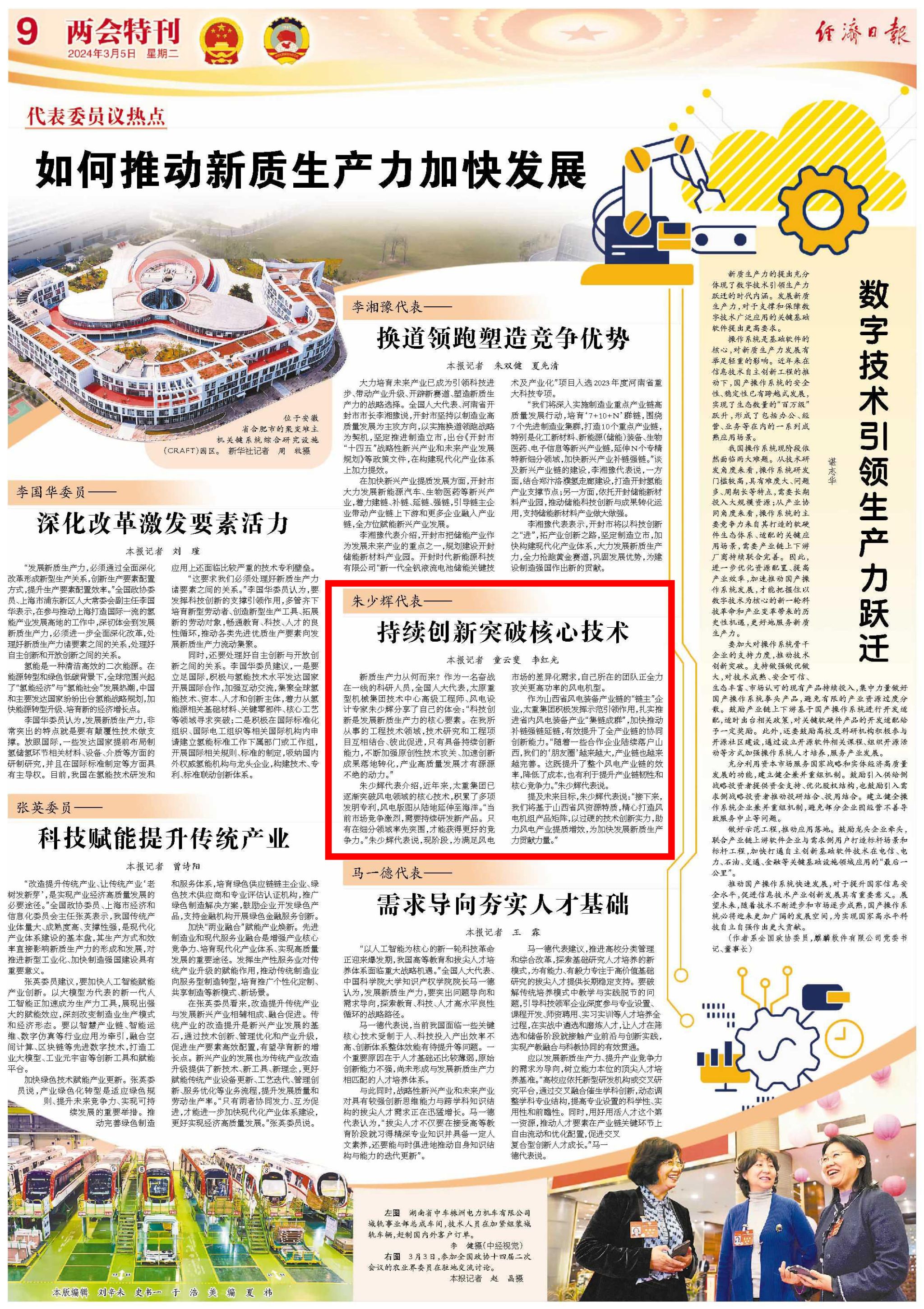 习近平总书记指出,新质生产力本身就是绿色生产力。在朱少辉看来,能源体系的绿色转型是绿色生产力的应有之义,以前沿性、颠覆性技术突破促进风能这一绿色能源的发展,应该是新时代“追风人”坚决扛起的使命,也是作为人大代表履职的重点。朱少辉表示,将积极面对迭代迅速的风电市场,不断向着“效率高、重量轻、成本低”的方向迈进。