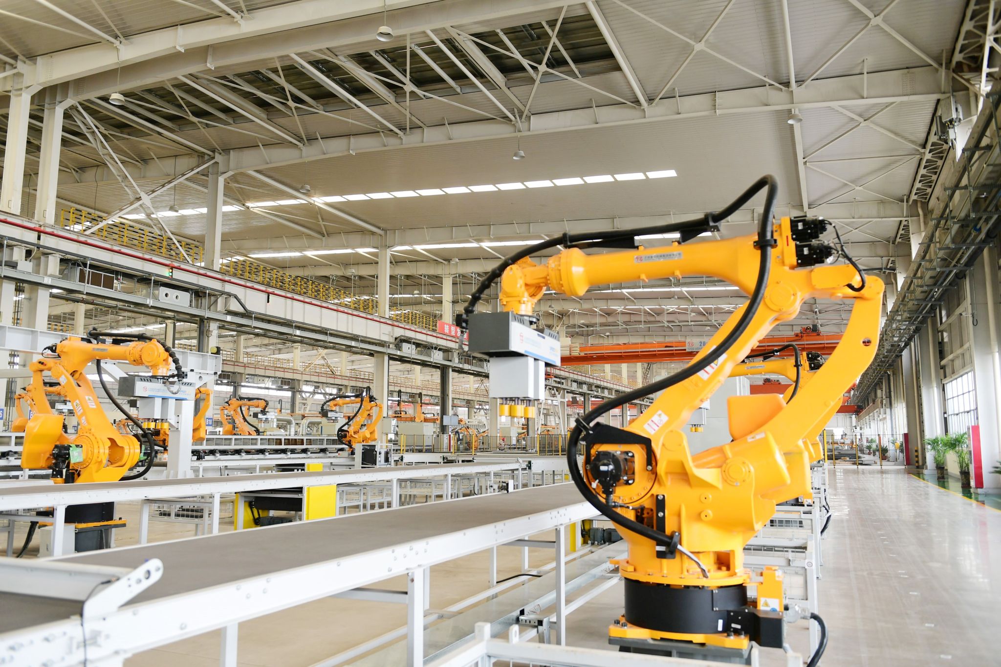 智能高端装备产业园区智能加工配送中心内,机器人在进行全自动分拣作业。