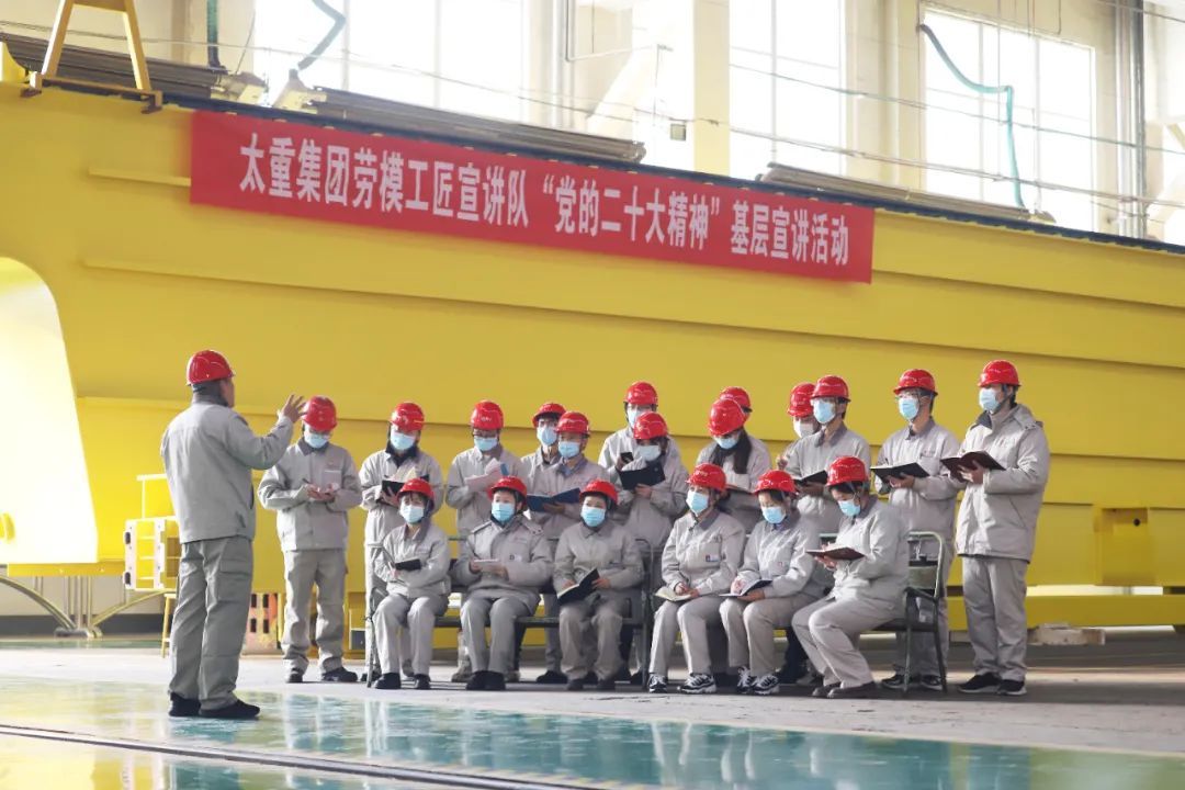集聚形成了一批劳模工匠先进典型群体。为充分发挥公司“劳模工匠”的集聚优势,太重专门组建了一支理论功底深、表达能力强、有宣讲经验的人员组成了“劳模工匠”宣讲队。下一步,宣讲队将继续深入基层一线、车间班组开展党的二十大精神宣讲活动,进一步发挥劳模工匠榜样激励和示范带动作用,传递奋斗之声,汇聚奋进之力,激励广大党员干部职工感悟思想伟力,扛起使命担当,为建设制造强国贡献力量,推动党的二十大精神在太重落地生根、开花结果。